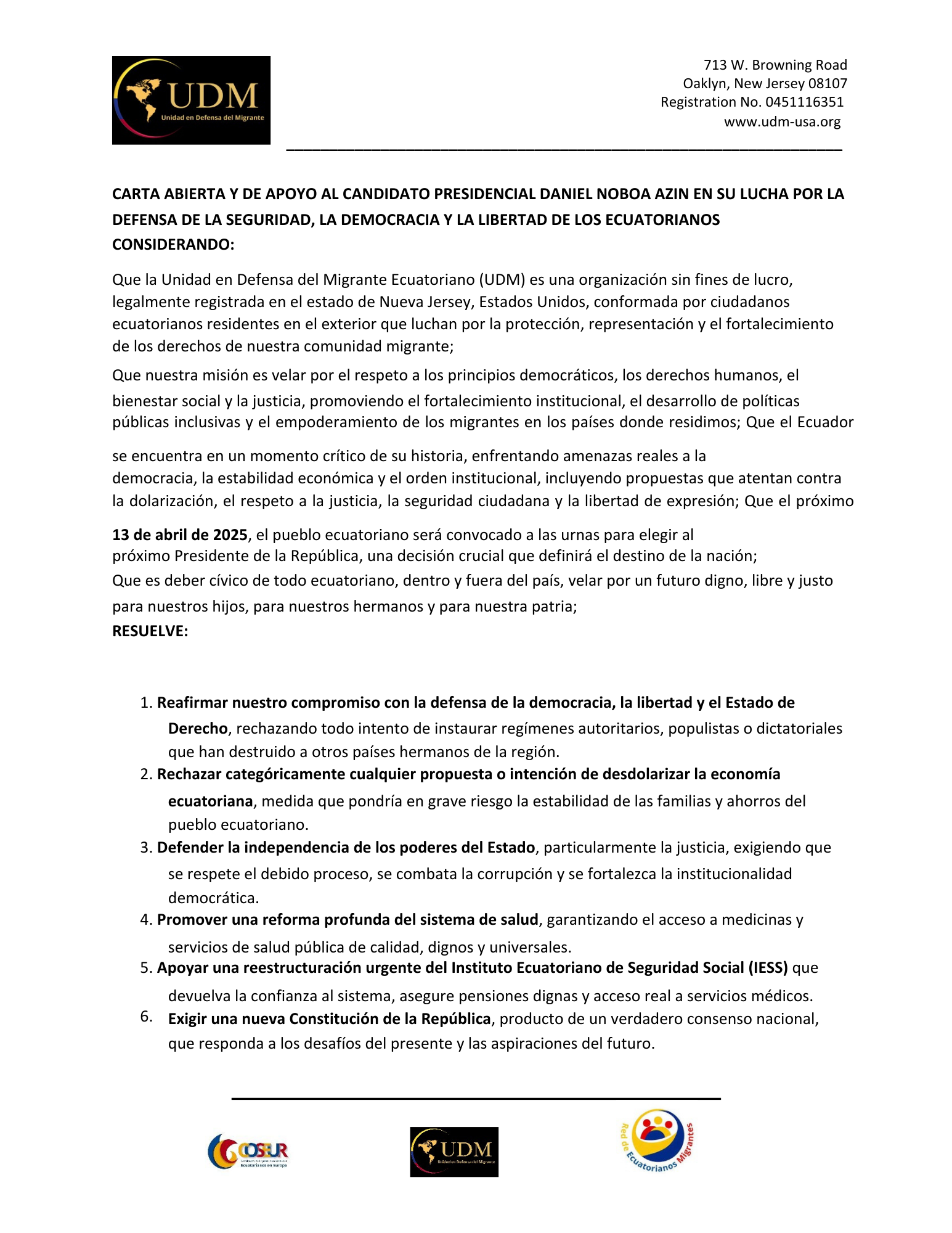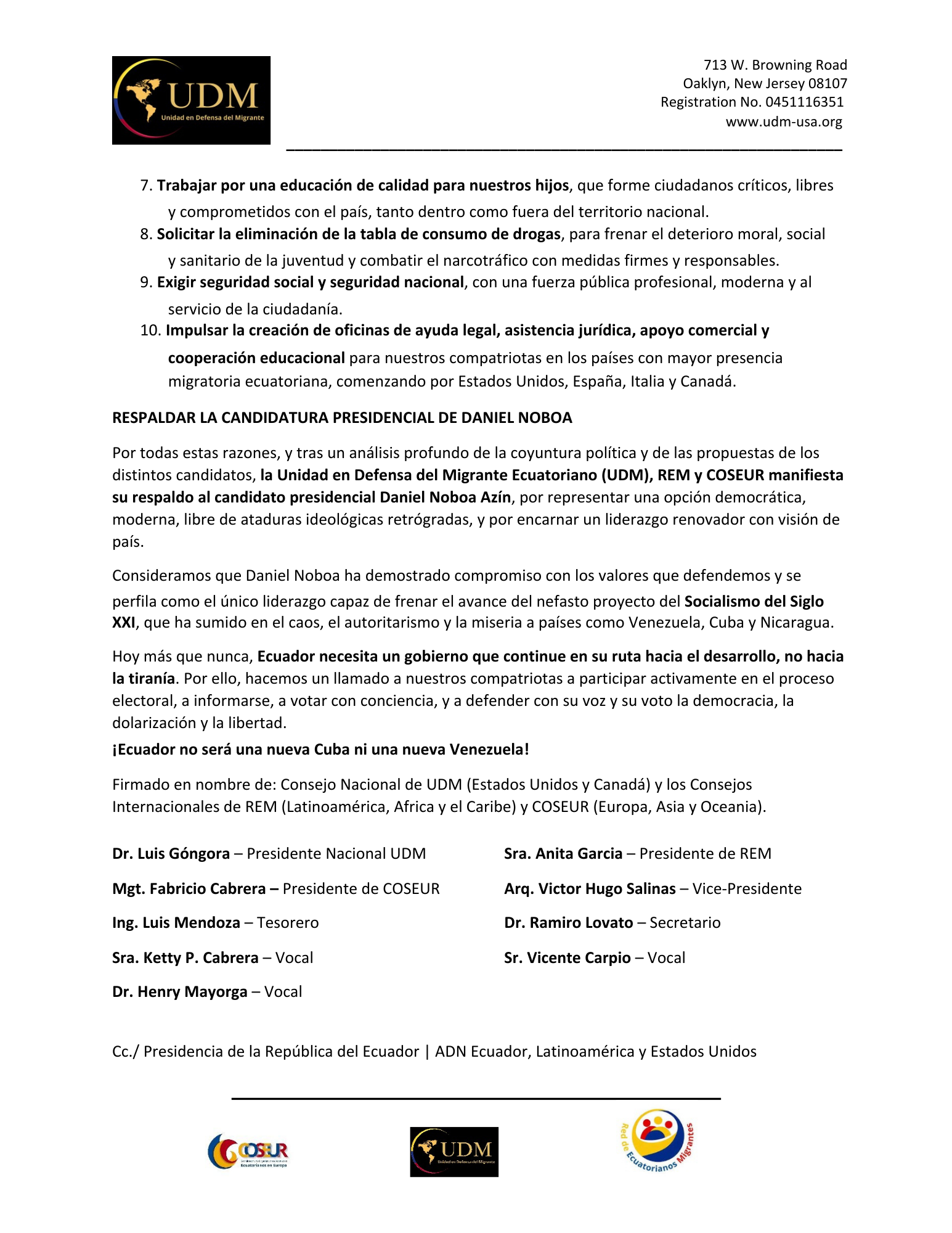UDM es una agrupación ciudadana integrada por ecuatorianos migrantes, con ideas por un mejor Ecuador.